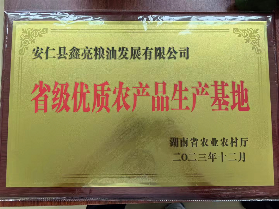 鑫亮糧油稻谷油菜基地榮獲省級優(yōu)質(zhì)農(nóng)產(chǎn)品生產(chǎn)基地稱號